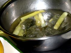 塩とレモン汁(白く仕上げる)を入れた熱湯で穂先を茹でる。軟らかくしすぎないように注意 |