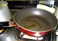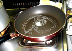 やや強めの火で表面だけに色をつけて、取り出す。弱火で時間をかけると全体が硬くなるので気を付けること |