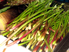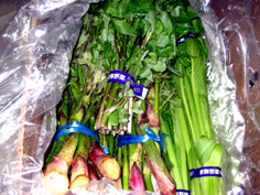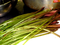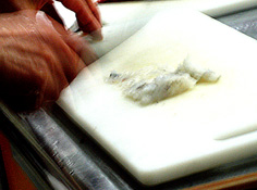 | あいこは棘があるので皮をむく | みずも葉をとる | かつおのアラは湯通し | ||||