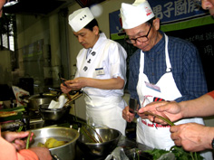 | 筍・山菜・油揚げ入りご飯 | 薄焼き卵と木の芽を飾る | 海老は背わたを取り | ||||