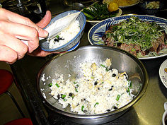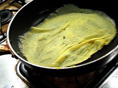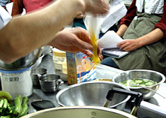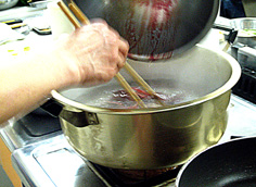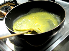 | 洗ってから筍・山菜と煮る | ご飯用の薄焼き卵 | ガーゼで漉すと滑らかに仕上がる | ||||