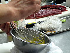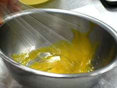 | 包丁全体でつぶし | 良くたたく | 卵黄を溶き塩・こしょう少々 | ||||