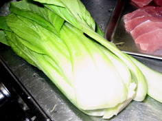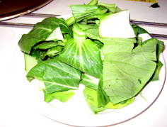 チンゲン菜は根元から丁寧にはがし、良く洗う |