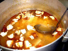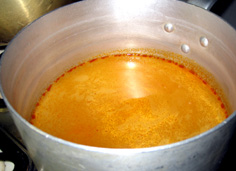 鍋に水4カップとトムヤムクンペーストを溶き入れ、煮立てる |