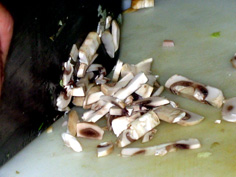 マッシュルームも細かく切る |