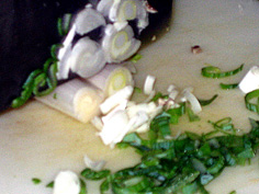 ねぎは粗微塵切り |