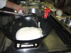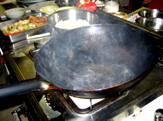 中華鍋を焼き、油を入れて馴染ませてから一度空け、油返しをする |