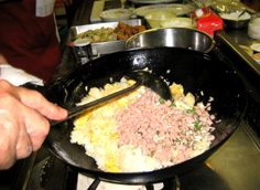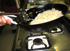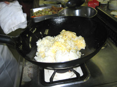 具を加え、パラパラになるように炒めあわせる |