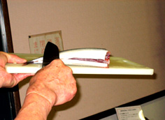えらの下に刃先を入れ |