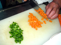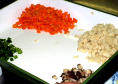 筍、人参、ピーマン、干椎茸を細かく切る |