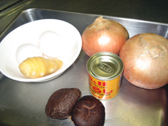 材料 4人分 玉ねぎ 中位を2個 干椎茸(戻して) 2〜3枚 豚挽肉(又は鶏ひき肉) 300g 卵 1個 生姜 1片 食べる時に辛子、醤油を用意 調味料 砂糖 大さじ2 醤油 大さじ2 コショウ 少々 片栗粉 大さじ3 |