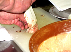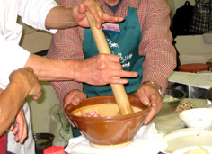すり鉢に挽肉を入れ、擂る |