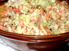 玉ねぎに片栗粉少々振り、軽くまぜる。これは水気が出ないようにするため |