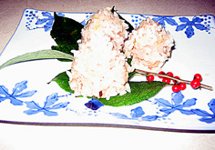南天などの葉に盛ったところ。綺麗にできました |