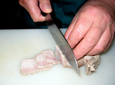 冷めた豚ばらをスライス |
