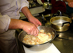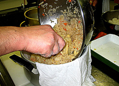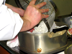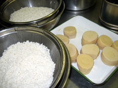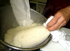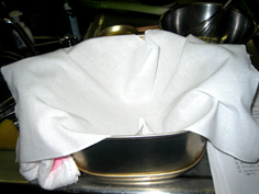 もう一度、さらしを敷いた蒸し器で蒸す。強火で20分 |