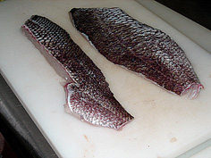 二枚の身。 を上に見て、右が下側の身。左が表側の身 |