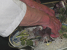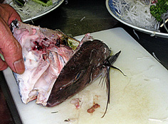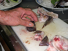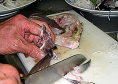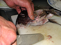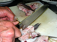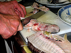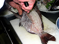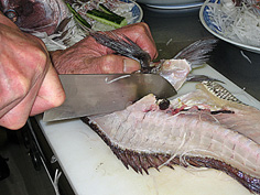 ここでは、姿造りの鯛のアラを取り出し、使う | |