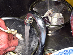 鍋にお湯を沸かし、アラをざっと湯通しする | |