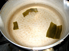 鍋に5カップの水と昆布を入れて沸かし、沸騰寸前に取り出しておく | |