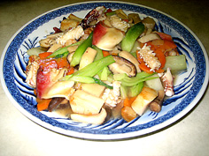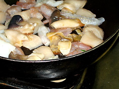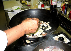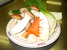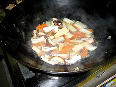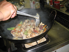 香りが出たら、残りの野菜と茸(チンゲン菜は最後)を加えて炒める | |