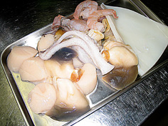 帆立貝柱 4個 むき海老 4尾 生いか 1/4杯 ほっき貝 2個 ※海鮮用下味 塩・酒・コショウ・片栗粉・サラダ油 各少々 | |