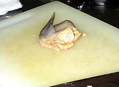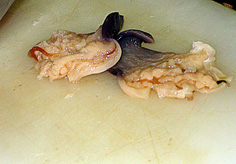 ほっき貝は俎板に軽く叩きつけると身がしまる | |