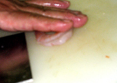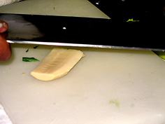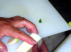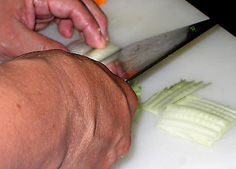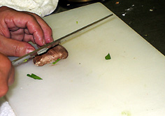 | 切れ目と直角に、薄くそぎ切りにする | ||