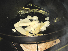 油を引いた鍋にネギ、生姜、たけのこを入れ炒める | |