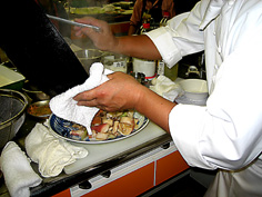 人参は薄く切り、ボイル。ここでは、先生が鳥の形の飾り切りに | |