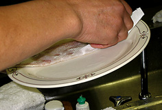 浸けておいた秋刀魚はペーパータオル等で水気を取る |