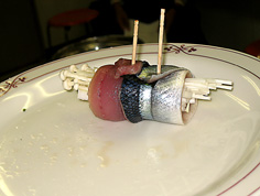 先ほど肝を煮て冷ましておいた調味料に、開いた秋刀魚を15分ほど浸ける |