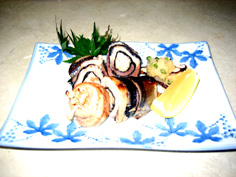 秋刀魚は食べ易く切り、椎茸とレモンを添える。 |