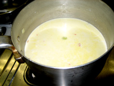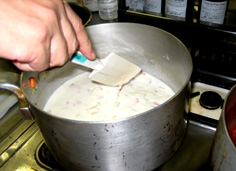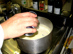 この時、ちょっと火からはずして全体に粉が馴染むようにする | |