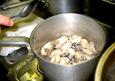 沸いたら洗ったカキを入れ、6割ほど火を通し | |