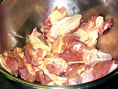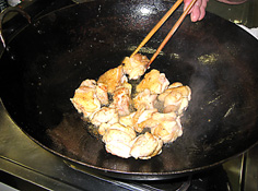 これ位にソースが煮詰まったら、肉を戻してソースと合わせる |