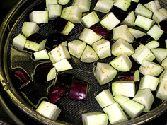 茄子は1cm角に切り、水にさらす |