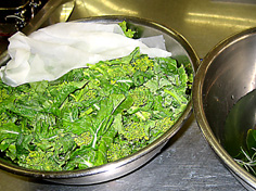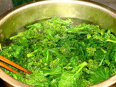 菜の花は根元の硬いところを取り、水にはなしてシャキッとさせておく | |