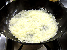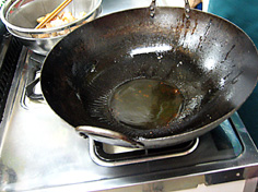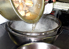 豚バラを炒める。ゆっくりと焼色をつけ、ザルに空けて油を切る | |
