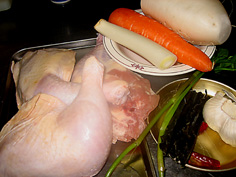 材料 4人分 骨付き鶏もも肉 3本 出し昆布 10cm 大根 250g 人参 100g 唐辛子 2本 せり 3本 にんにく 1片 長ネギ 1/4本 ※調味料 塩 小さじ1 醤油 80cc 砂糖 大さじ3 ※仕上げ用 すりゴマ 大さじ1 ごま油 小さじ1 あれば糸唐辛子少々 コチュジャンは食べる時に好みで |