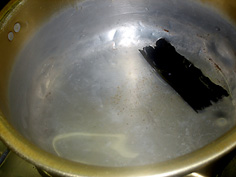 出し昆布を入れていた鍋に空ける。昆布もちぎって一緒に加える |