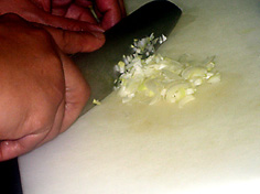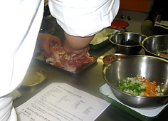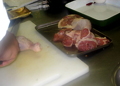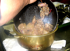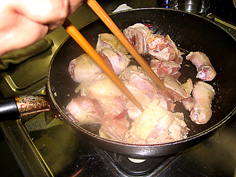 鶏肉を炒める。ここでは鶏肉に軽く色がつく程度 |