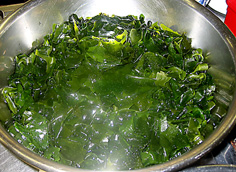 わかめはたっぷりの水でもどして、一口大に切っておく |