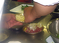 ネギ、おろしたしょうが、にんにくを合わせておく |