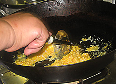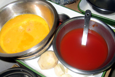 玉子を一気に流し込み |