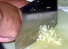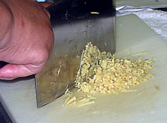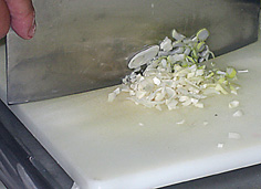 ネギは微塵切り。最後の飾り用に少し取り分けておく |