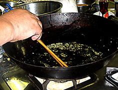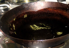 鍋を熱くして、油返しをする。その後、やや多めの油を入れて熱する |