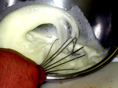 白身をよく泡立て、片栗粉を小さじ2加え、また軽く泡立てておく |