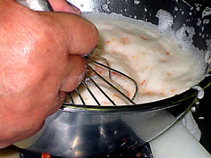 先ほどの鮭の身を白身に加え、泡をつぶさないようにしながら混ぜる |