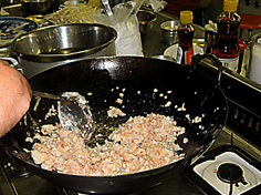 焦がさないようにゆっくり掻き混ぜて汁気を吸わせる |